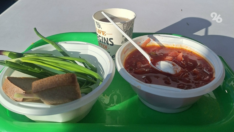 Но можно было отведать и более привычные угощения: блины с разными начинками, бутерброды с салом или сельдью, осетинские пироги, борщ, долму, ватрушки и, конечно, шашлык.
