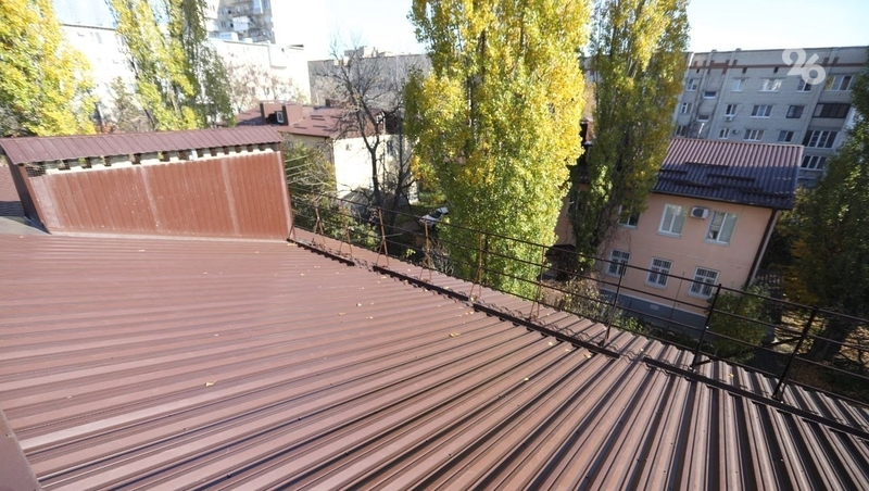 Также подрядчик перенёс перекрытия на стальной профильный лист, восстановил дымоходы, установил забор для более удобной чистки водостоков, обновил козырьки. Проблем с протечками больше нет.
