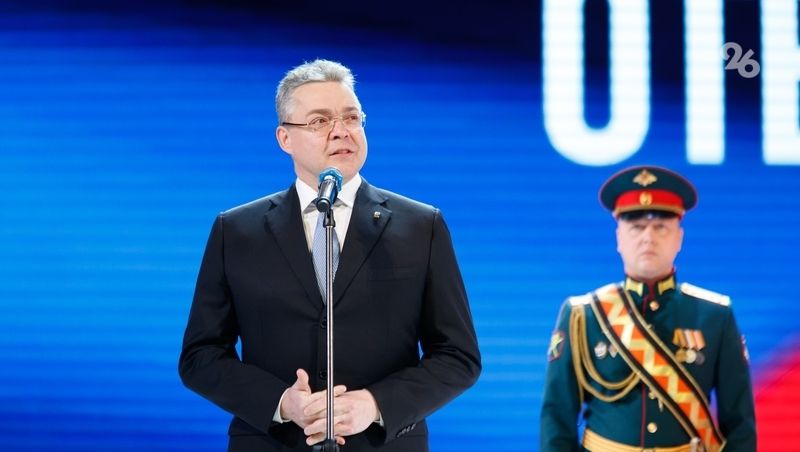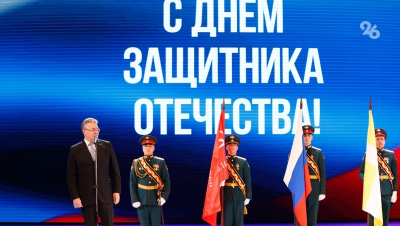 Губернатор Ставрополья Владимир Владимиров поздравил со сцены военных и напомнил о вкладе бойцов в общее дело. Кадетам глава региона порекомендовал взглянуть на тех, кто сегодня защищает страну.