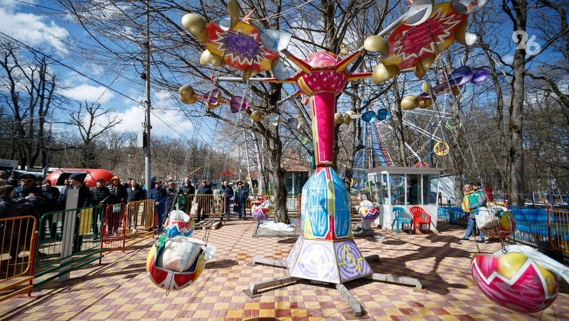 Официальная часть была разделена на две, а между ними представители парка Победы и краевого Гостехнадзора показали, как они проводят проверку каруселей.