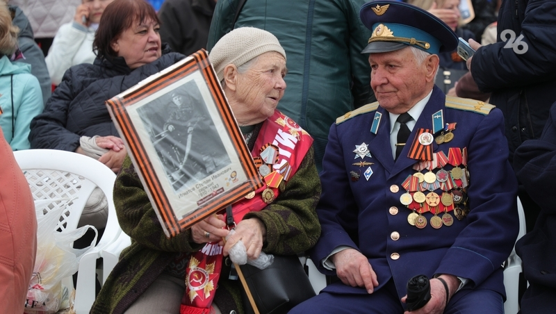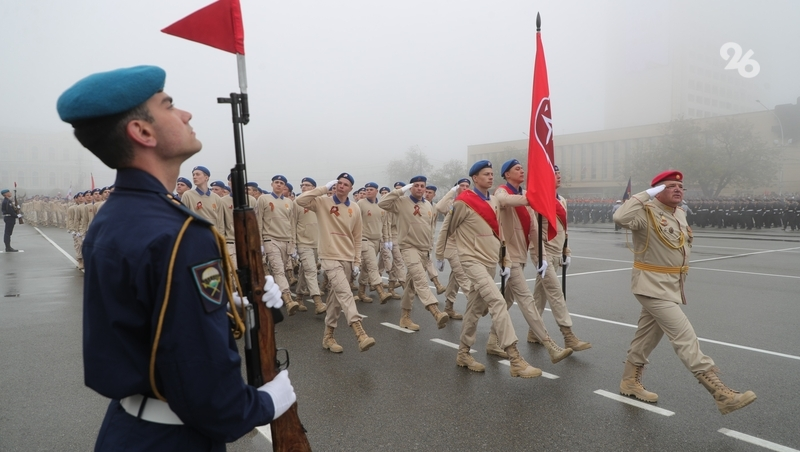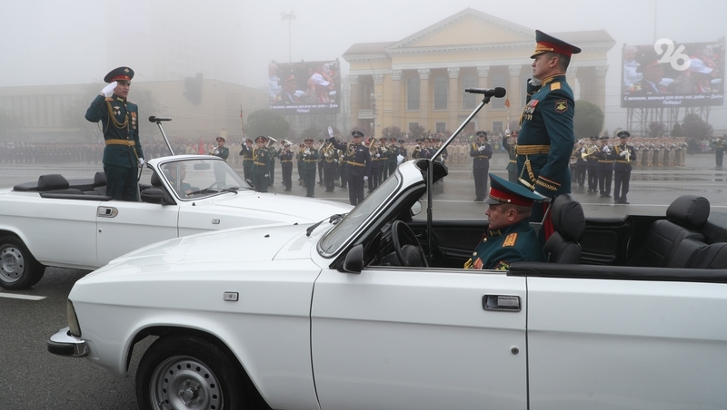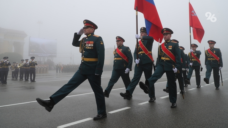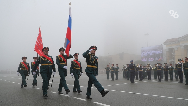 После празднование 9 Мая переместилось на площадь Ленина, где несмотря на густой туман и холод сотни ставропольцев и гостей региональной столицы собрались посмотреть торжественный парад Победы.