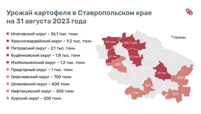 На Ставрополье наращивают производство овощей. С 2023 года регион участвует в федеральном проекте «Развитие отраслей овощеводства и картофелеводства». По поручению губернатора Ставропольского края Владимира Владимирова на производство овощей и картофеля направлены средства из федерального и регионального бюджетов. Из краевой казны — 227 млн рублей. Это направление держит на контроле региональный минсельхоз. В 2022-м благодаря господдержке с полей было собрано 137 тыс. тонн картофеля, в этом году аграрии планируют отправить в закрома порядка 150 тыс. тонн клубней.