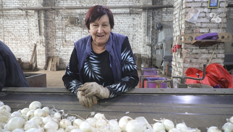 Если ранняя морковь летом сразу поступала на продажу, то позднюю закладывают на хранение до весны. Также в хранилище отправляют разные сорта лука, а позже в хозяйстве начнут копать картофель. Чтобы овощи с грядки поступали в хранилище — их нужно правильно подготовить, и в этом случае без помощи человека не обойтись. Работают на предприятии в основном женщины.