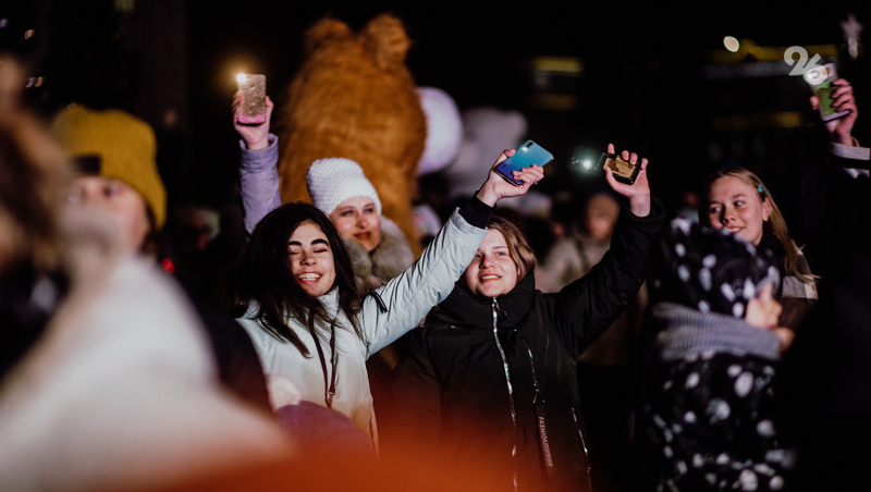 Под праздничную иллюминацию ставропольцы спели вместе с артистами песню «В лесу родилась ёлочка» и устроили большой хоровод.