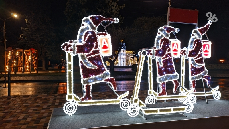 К слову, в этом году представители бизнеса подарили Ставрополю семь новых арт-объектов. Светящиеся фигуры появились на центральных улицах города, и теперь Деды Морозы на самокатах, пара оленей, яркий павлин, снежная арка, короб с огоньками, сказочная карета и руки в виде сердца радуют малышей и взрослых. И, конечно же, служат отличным фоном для запоминающихся новогодних фото.