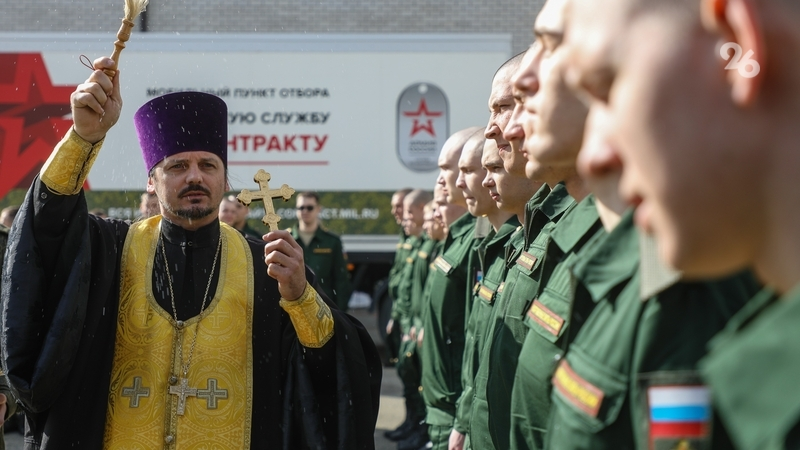 Перед отправкой в воинские части иерей Ставропольской епархии Владислав Сулейманов отслужил молебен и окропил призывников святой водой. Он также выдал желающим нательные кресты.