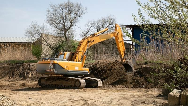 Сырьё для производства асфальтобетона укомплектовывают в аккуратные горки с помощью спецтехники. Это достаточно трудоёмкий процесс.