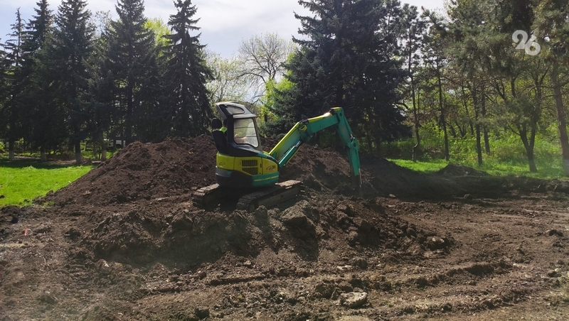 Подрядчик уже приступил к демонтажным работам. Специалисты делают выемку грунта, готовят основание площадки и спиливают сухие деревья. Так как сквер находится рядом с воинским мемориалом, здесь появятся тематические объекты: вертолёт Ми-8, БТР и две гаубицы.