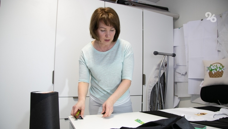 Ещё одна получательница соцконтракта из Невинномысска — Елена Ширяева. На полученные средства она открыла собственную швейную мастерскую. Благодаря господдержке женщина купила машинку, на которой теперь делает шевроны для участников СВО, вышивку на полотенцах, халатах и других вещах.
