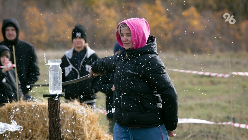 Площадка, на которой казак показывает всем желающим, как изрубить на части бутылку с водой, неподалёку. Пользуется популярностью не только у подростков. Анна Булаткина — мама двух мальчиков, пришла на фестиваль с детьми и мужем. Шашку взяла в руки впервые, но успешно справилась с задачей.