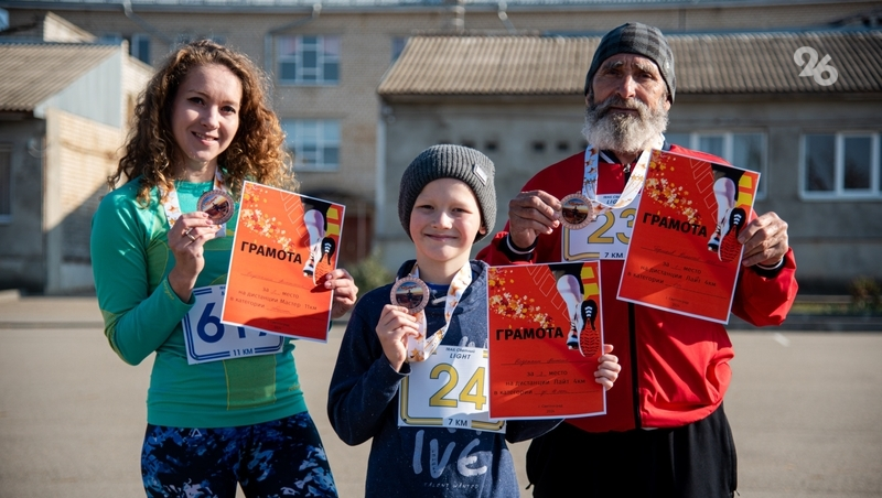 Самым возрастным бегуном стал житель Сухой Буйволы Николай Горшков. Ему 72 года, однако это не помешало мужчине пробежать 4 км по пересечёнке и занять первое место в своей возрастной категории на дистанции «Лайт 4 км». Николай Горшков, кстати, побежал, чтобы поддержать своего внука Мишу. В своей категории юный марафонец занял третье место на той же дистанции, что и дедушка.