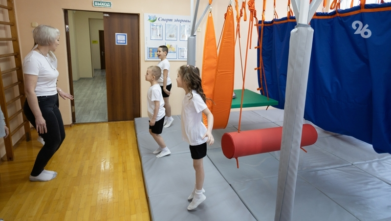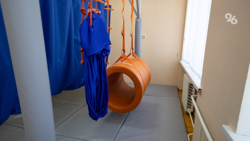 Новая локация появилась в «Росинке» три месяца назад. Это комната с несколькими спортивными снарядами. Пол для безопасности застелен матами.