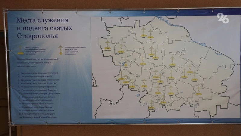 Экспозиция посвящена 14 подвижникам благочестия, которых и включили в перечень Собора святых Ставропольской митрополии. Все материалы в ней выстроены по хронологии — от святого благоверного князя Михаила Тверского, убитого ордынцами в 1318 году, до священнослужителей, пострадавших в ХХ веке.