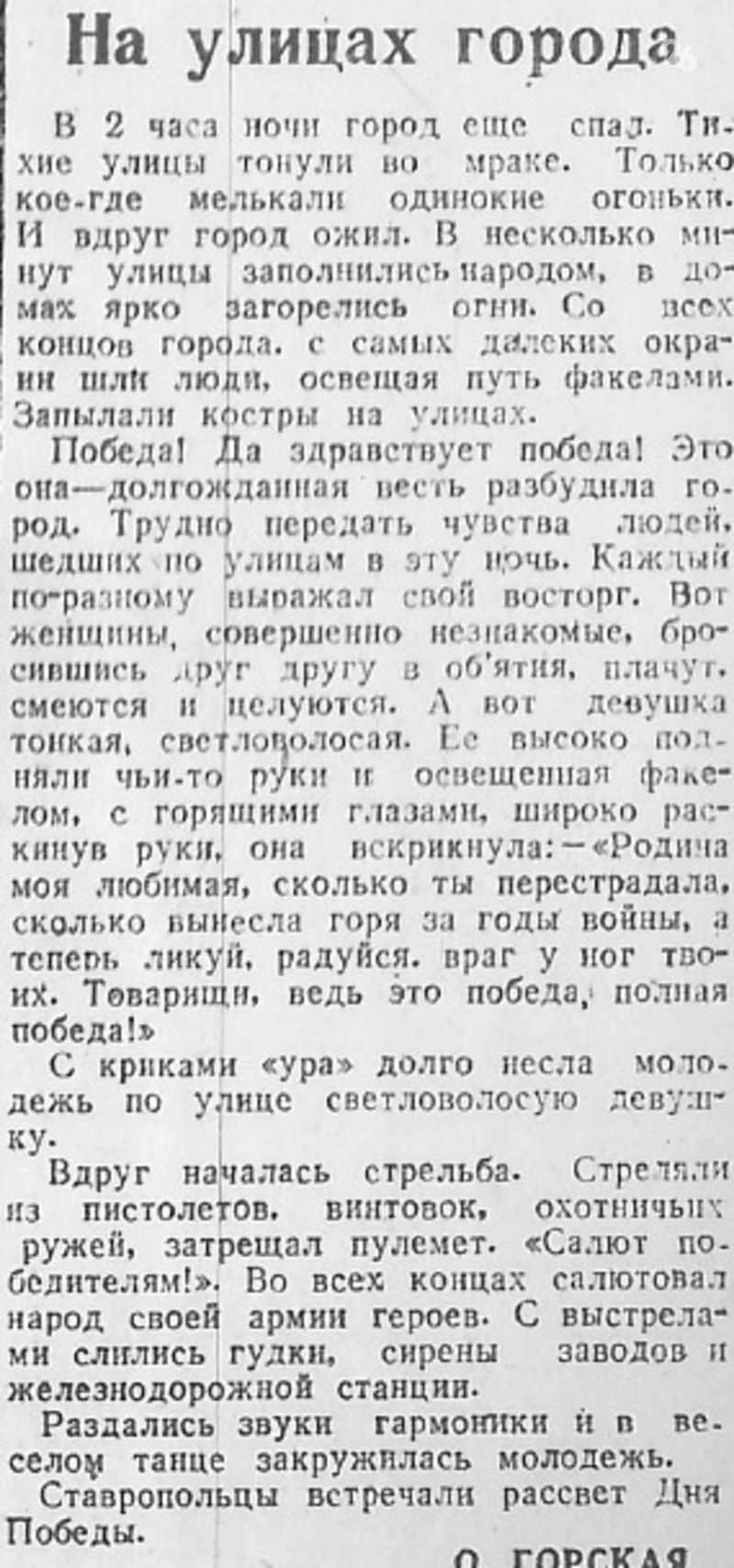 «Салют победителям!» Во всех концах салютовал народ своей армии героев. Ставропольцы встречали рассвет Дня Победы»,