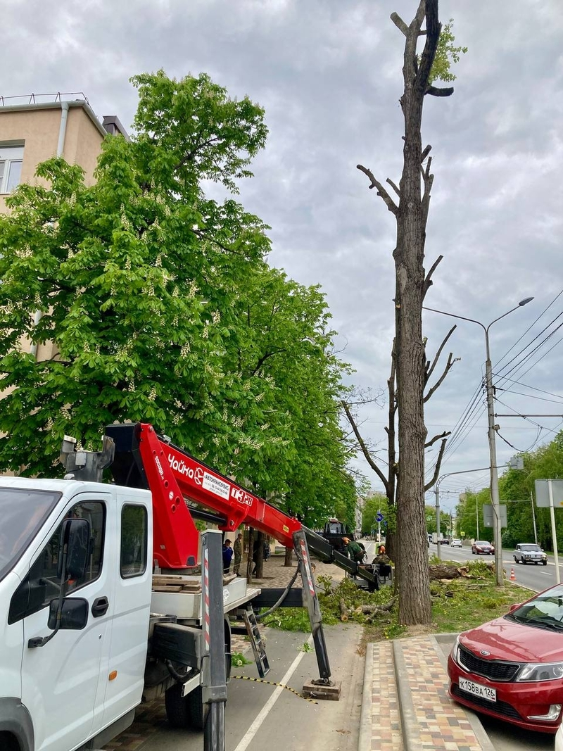 В городской администрации корреспонденту «Победы26» ответили, что зелёная комиссия Ставрополя согласовала снос одного аварийного дерева на улице Ленина, другому — старовозрастному дереву — проводят омолаживающую обрезку, за счёт которой убирается 50% скелетных ветвей дерева.