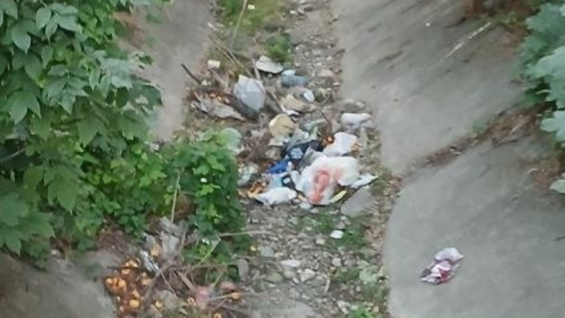 В свою очередь горожанка считает, что мэрия очистила только определённый участок канала для отчёта. Женщина прошлась с камерой, чтобы показать состояние канала на сегодняшний день. Судя по кадрам, в водотоке фантики и бутылки лежат вперемешку с шинами.