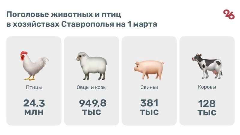 Также за указанный период на Ставрополье получили 164,5 млн яиц и 73,3 тыс. тонн мяса.