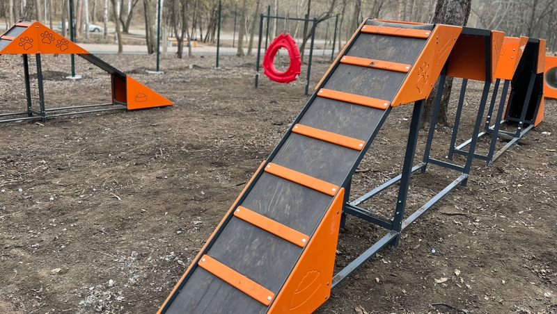 Площадку для выгула и дрессировки собак оборудовали специальными тренажёрами и полосой препятствий: подиумами, змейкой, лабиринтами, туннелями. Также сделали ограждение вокруг. Теперь домашние питомцы не будут мешать пешеходам и отдыхающим в парке. Это повысит безопасность и создаст удобные условия для владельцев животных.