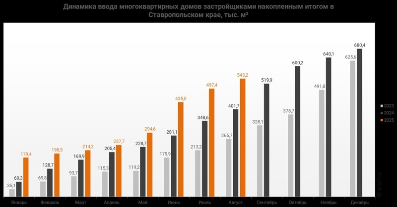 По показателю ввода в эксплуатацию многоквартирных домов за август этого года Ставрополье занимает 15-е место из 85 регионов страны, а по показателям за январь-август — 10-е место.