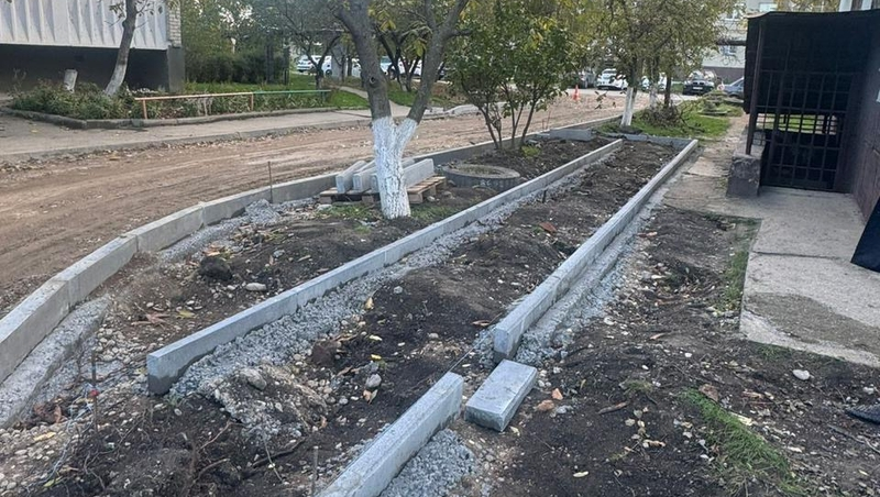 План работ включает замену дорожного покрытия, установку бордюров, организацию парковок, ремонт тротуаров, монтаж лавок и урн. Сейчас готовность объектов составляет примерно 50%. Специалисты выполнили демонтаж старого покрытия, подготовили основание под асфальт, установили бордюры.