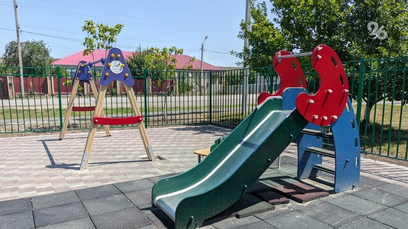 Ранее сообщалось, что детская площадка появилась в ещё одном селе на Ставрополье. Рабочие смонтировали игровой комплекс, постелили прорезиненное покрытие и установили скамейки.