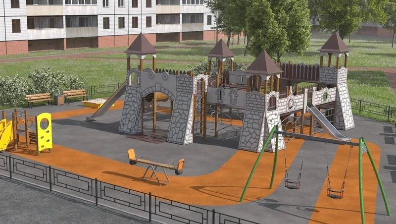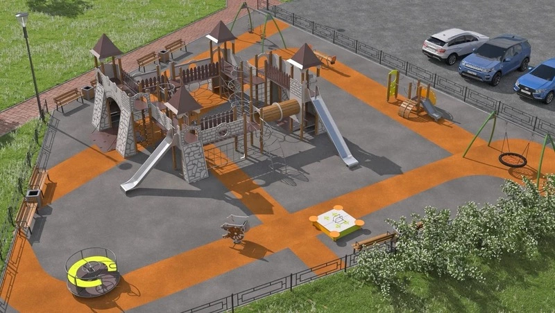 На детской площадке установят игровой комплекс, качели, карусель и песочницу. Спортивную зону оснастят антивандальными тренажёрами, футбольными воротами и баскетбольными щитами.
