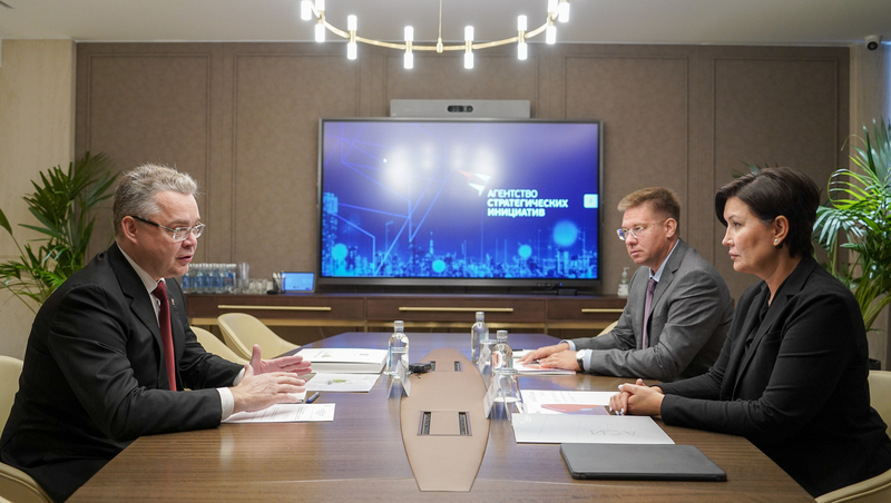 В рамках Дня Ставропольского края губернатор Владимир Владимиров встретился с генеральным директором Агентства стратегических инициатив Светланой Чупшевой. В марте 2023 года стороны подписали соглашение о сотрудничестве, которое направлено на развитие инвестиционного потенциала региона.