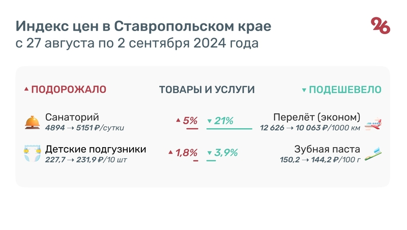 Среди непродовольственных товаров и услуг в регионе на 21,2% упала цена авиабилетов. Полёт в салоне экономкласса в расчёте на 1000 км пути в среднем обойдётся в 10 063 рубля.