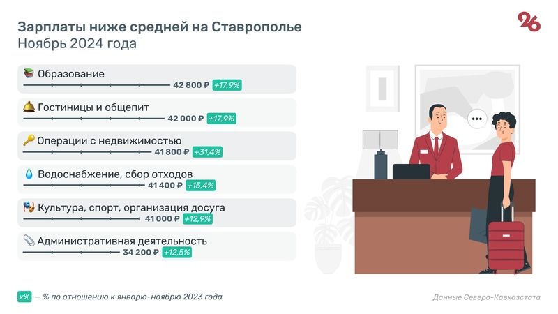 В инфографике «Победы26» представлен список специальностей, на которых уровень дохода оказался ниже среднего по региону.