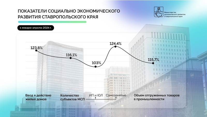 Ставрополье продемонстрировало положительные результаты в различных отраслях. К примеру, увеличился объём отгруженных товаров в промышленности. Производство продуктов питания выросло более чем на 111%, а производство напитков — на 112%. Параллельно с этим вырос индекс промышленного производства. Оборот розничной торговли достиг 306,6 млрд рублей.