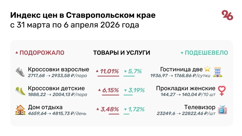 Немного доступнее стали для ставропольцев телевизоры, женские прокладки и проживание в 2-звёздочной гостинице.