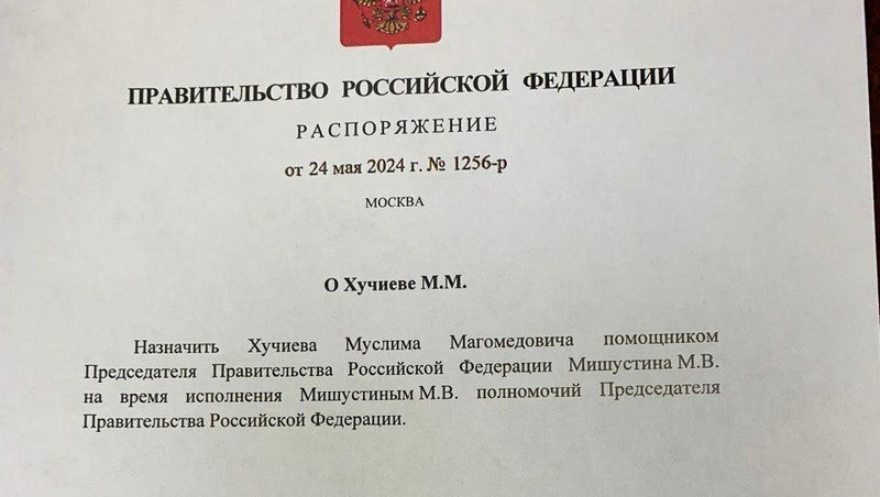 Михаил Мишустин подписал распоряжение о назначении Муслима Хучиева на должность своего помощника. Напомним, 21 мая Рамзан Кадыров рассказал, что премьер-министр Чечни покидает свой пост. В роли помощника главы кабмина Хучиев будет заниматься в том числе региональной повесткой.