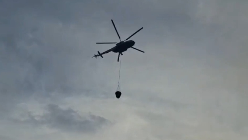 «Как только погодные условия станут лучше, вертолёт возобновит работу. Пока же тушение пожара продолжается»,