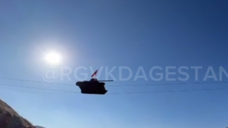 Дагестанец Камиль Мамаев проехал на танке по канату натянутому между горами