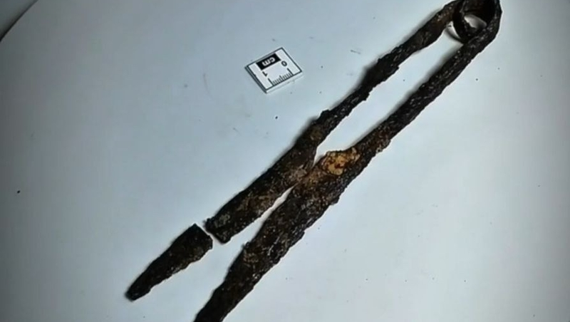 Необычная вещь обнаружилась в склепе № 6. Подобные старинные ножницы встречаются в археологическом материале с 7-го века, а также в период Золотой Орды и до 20-го столетия.