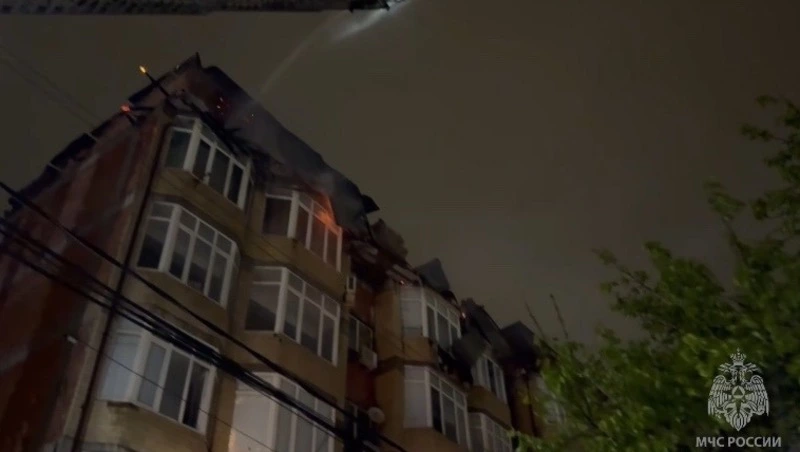 Сгорела мансарда. Площадь пожара достигла около 600 кв. м. Тушить пламя прибыли 44 специалиста и 14 пожарных машин.