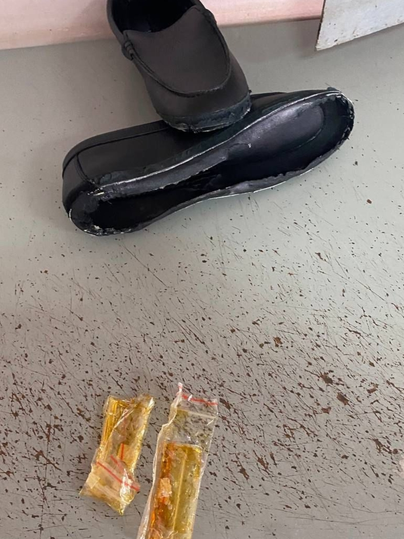 Пакеты с тёмно-жёлтым веществом вытащили из подошвы мокасин. По итогам экспертизы выяснилось, что найденное является запрещённым веществом массой 4,48 г.