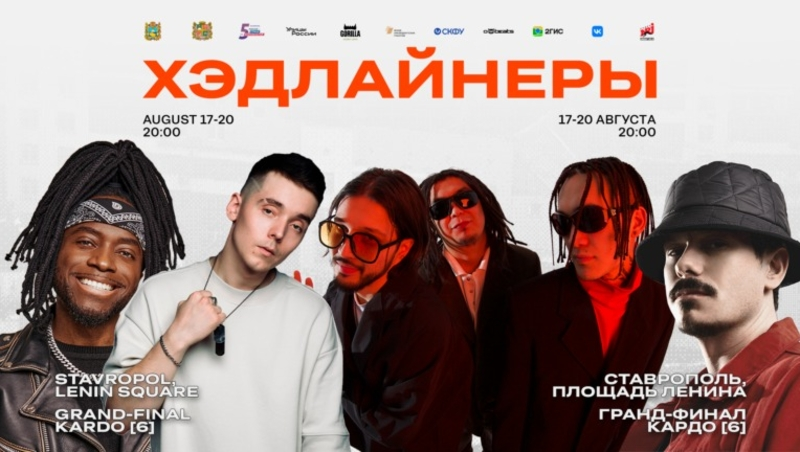 Как сообщили организаторы премии «КАРДО», 17 августа в краевой столице выступит хип-хоп группа из Казахстана CAPTOWN. В пятницу, 18 августа, ставропольцы увидят на сцене PLC — рэпера, участника независимого музыкального лейбла Big Music, одного из основателей батл-лиги Slovo. В субботу, 19 августа, хедлайнером станет ведущий радио NRJ Саймон «Чёрный перец», а в воскресенье — рэпер из Татарстана Slame, артист лейбла Black Star, написавший гимн «КАРДО».