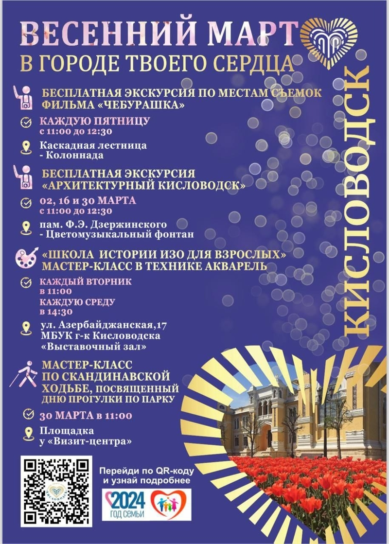 Расписание мероприятий на март опубликовала кисловодская мэрия. В этом месяце жителей и гостей города ждут концерты, выставки, спортивные соревнования, экскурсии и многое другое.