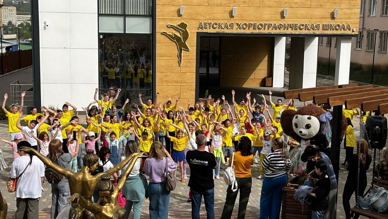 В понедельник, 29 апреля, отмечается Международный день танца. В честь праздника в новой хореографической школе прошло интерактивное мероприятие с участием Чебурашки. В нём приняли участие как воспитанники школы, так и местные жители.