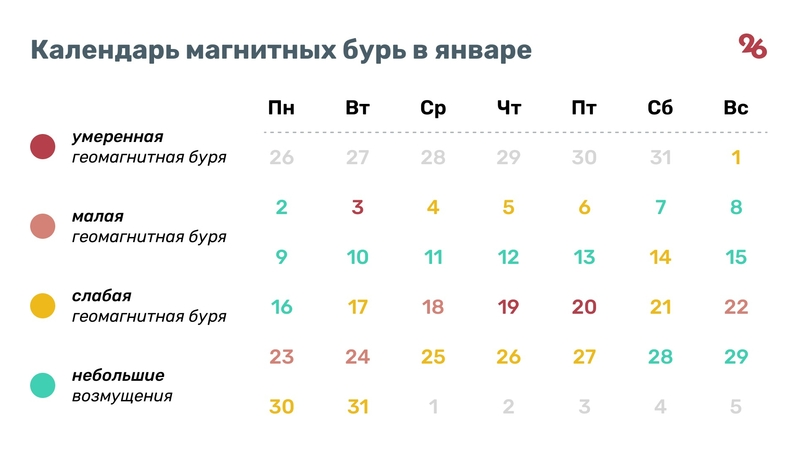 Негативное влияние можно будет ощутить также с 22 по 24 января. В эти дни ожидается малая геомагнитная буря.