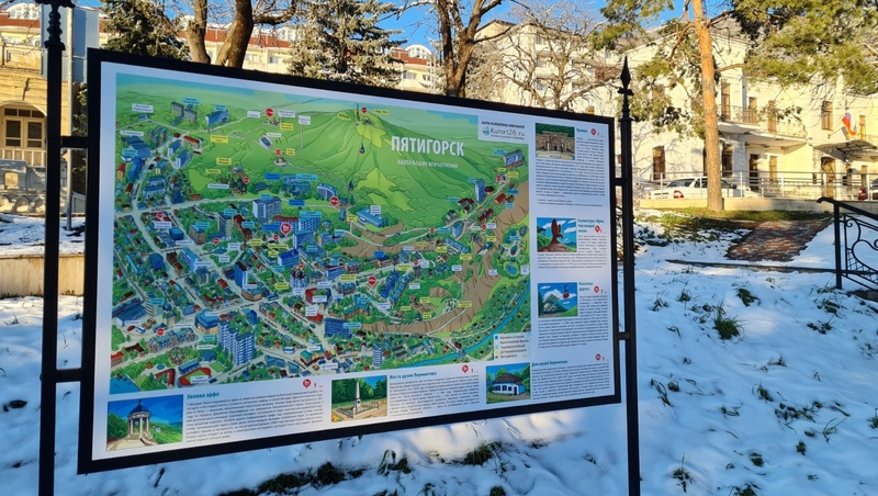 В Пятигорске устанавливают туристические карты для путешественников, доля которых в городе постоянно растёт. Так, в 2022 году в гостиницах города остановились свыше 128 тысяч туристов.