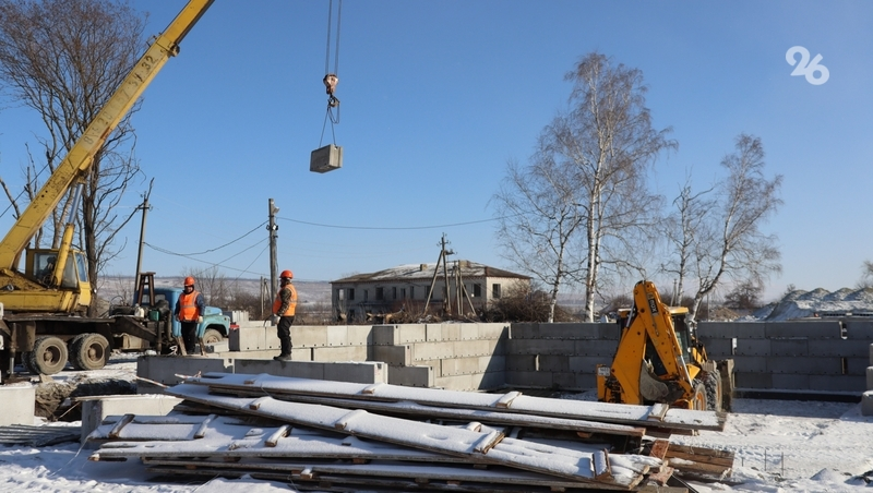 В сентябре 2022 года специалисты снесли аварийное здание школы, демонтировали и утилизировали материалы. После разработали грунт под котлован, возвели фундамент и уже поднимают стены из бетонных блоков. В скором времени специалисты перейдут к плитоперекрытию. На объекте работают 12 человек и 4 единицы техники.