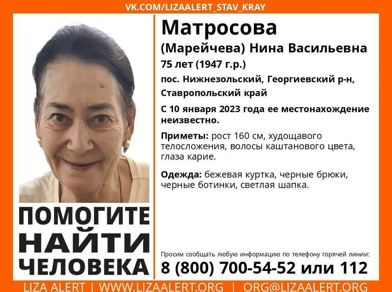 Всех, кому что-либо известно о ставропольчанке, просят позвонить по единому телефону поискового отряда:
