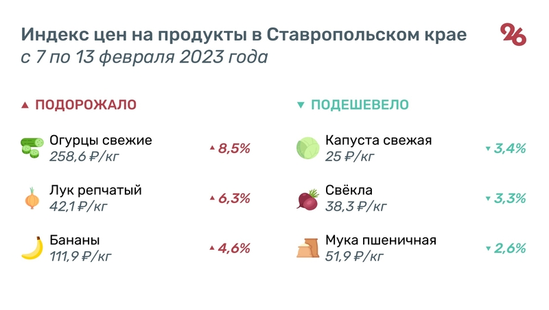 С 7 по 13 февраля в крае выросли цены на некоторые группы товаров. Так, свежие огурцы поднялись в цене на 8,5% — до 258,6 руб. за кг. Причём, эти овощи дорожают уже несколько недель подряд.