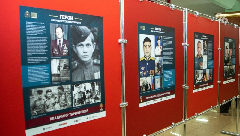 На информационных стендах представлены карточки с фотографиями, историями жизни и подвигов героев Советского Союза. Так, здесь можно прочитать о генерале Василии Маргелове, танкисте Киме Шило, командире стрелкового батальона Мелике Магерамове и других. А также о соотечественниках — участниках специальной военной операции.