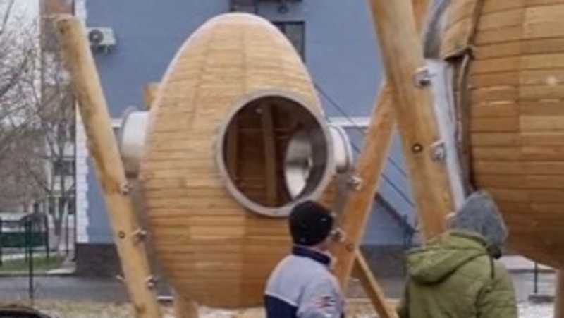 Несмотря на непогоду, на улице Советской продолжается строительство детской площадки. Сейчас специалисты монтируют малые архитектурные формы в виде «гнёзд». По словам Вячеслава Сергиенко, уже в ближайшие недели здесь будет веселиться детвора.
