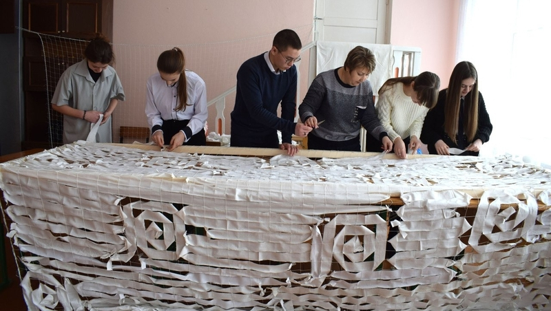 Восемь готовых белых маскировочных сетей уже отправили в зону СВО. Сейчас волонтёры и школьники приступили к изготовлению зелёных сетей.