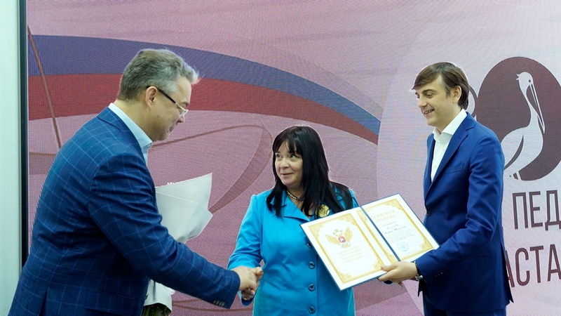 Позже Сергей Кравцов вручил награды ряду ставропольских педагогов. Звание Заслуженный учитель получила Елена Алексина — преподаватель истории и обществознания в гимназии № 2 Георгиевска. Знак «Почетный наставник» Министр вручил Ольге Бурба — учителю лицея № 5 Ставрополя.
