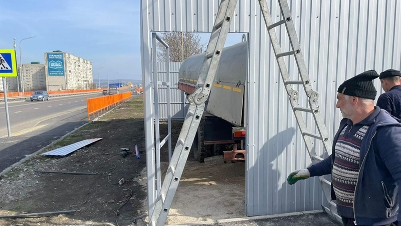 Накануне в Минеральных Водах демонтировали незаконно установленную газовую заправку. На месте, где она находилась, была организована несанкционированная точка торговли цементом, которую тоже пресекли.